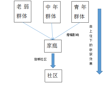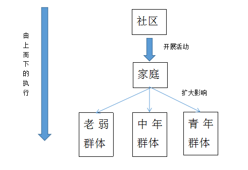 社区为总指挥,由上而下的进行活动的开展,从家庭入手使得活动开展的主题和效果集体化,从而达到人人参与辐射全社区的目的。